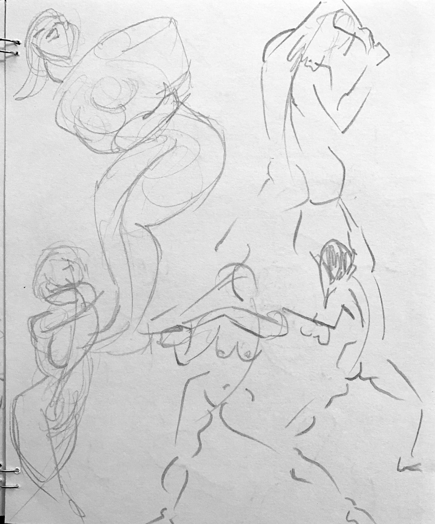 Last post, I promise to provide something a little more substantial, and I’m happy to say I’m ready to deliver! I have some nice little sketches from a few different sessions, and I’m pretty pleased with how most of them came out. I did something a little different for each session because it’s important to not get stuck in ruts doing everything the same all the time. However, they were all traditionally hand-drawn in my new hand-made sketchbook.