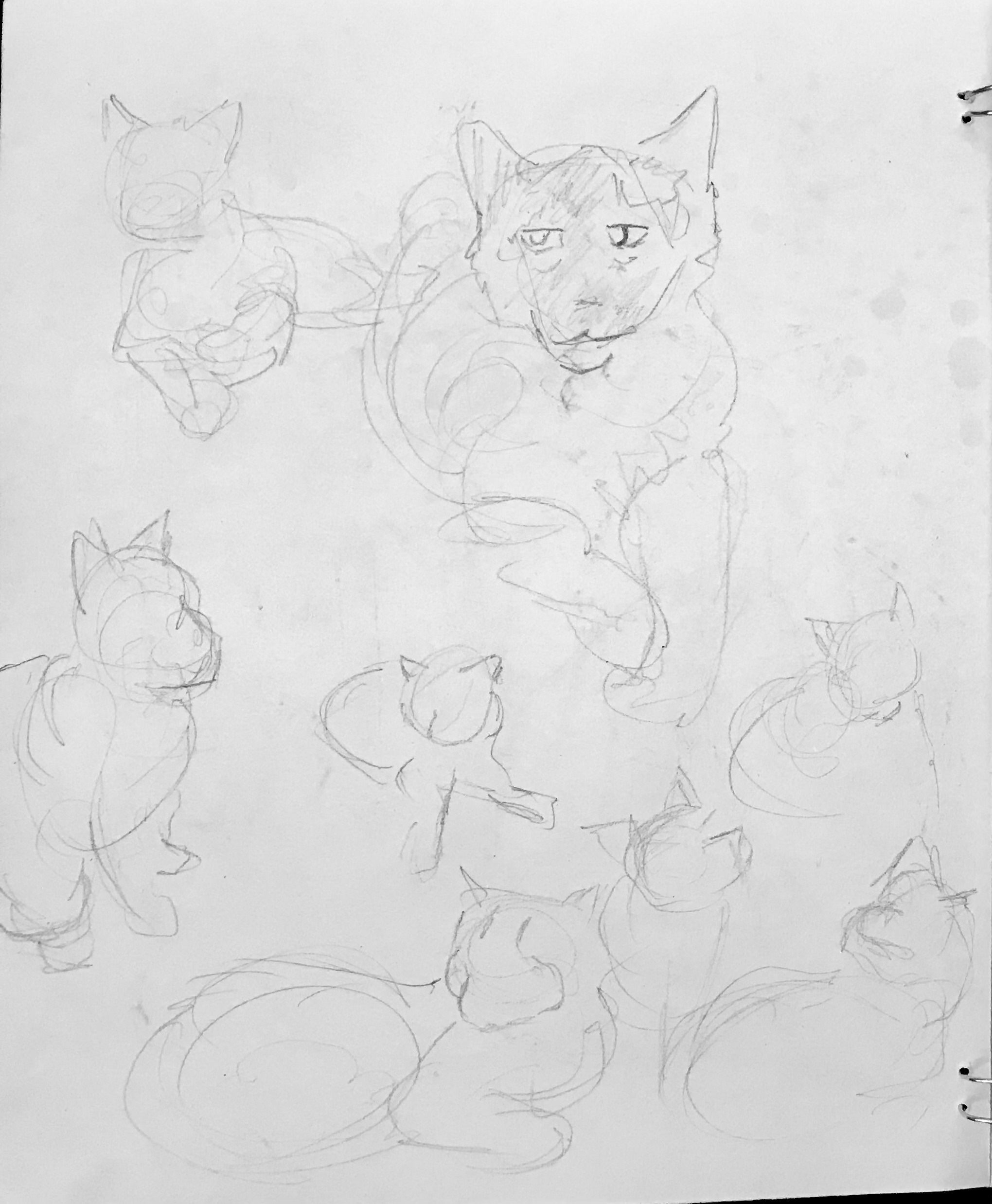 Next up, I have some cat gestures. It’s been a while since I’ve done animals. I’ve got a pet commission I am working on so I’m working towards getting familiar with the shapes again and expressing character.